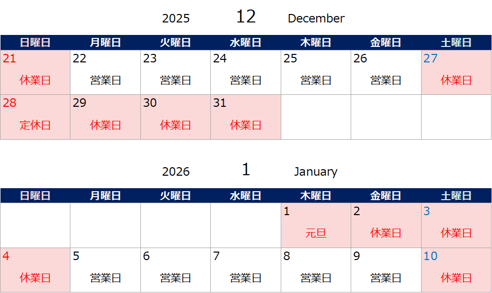 なお、年末年始休業中は、誠に勝手ながら弊社業務を一時的に停止させていただきます。